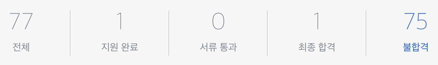 하지만 총 77개 회사에 지원해서, 20개의 회사에 서류합격을 했고, 그 중 16개 회사의 면접을 보고 14개 회사에 최종합격했다.